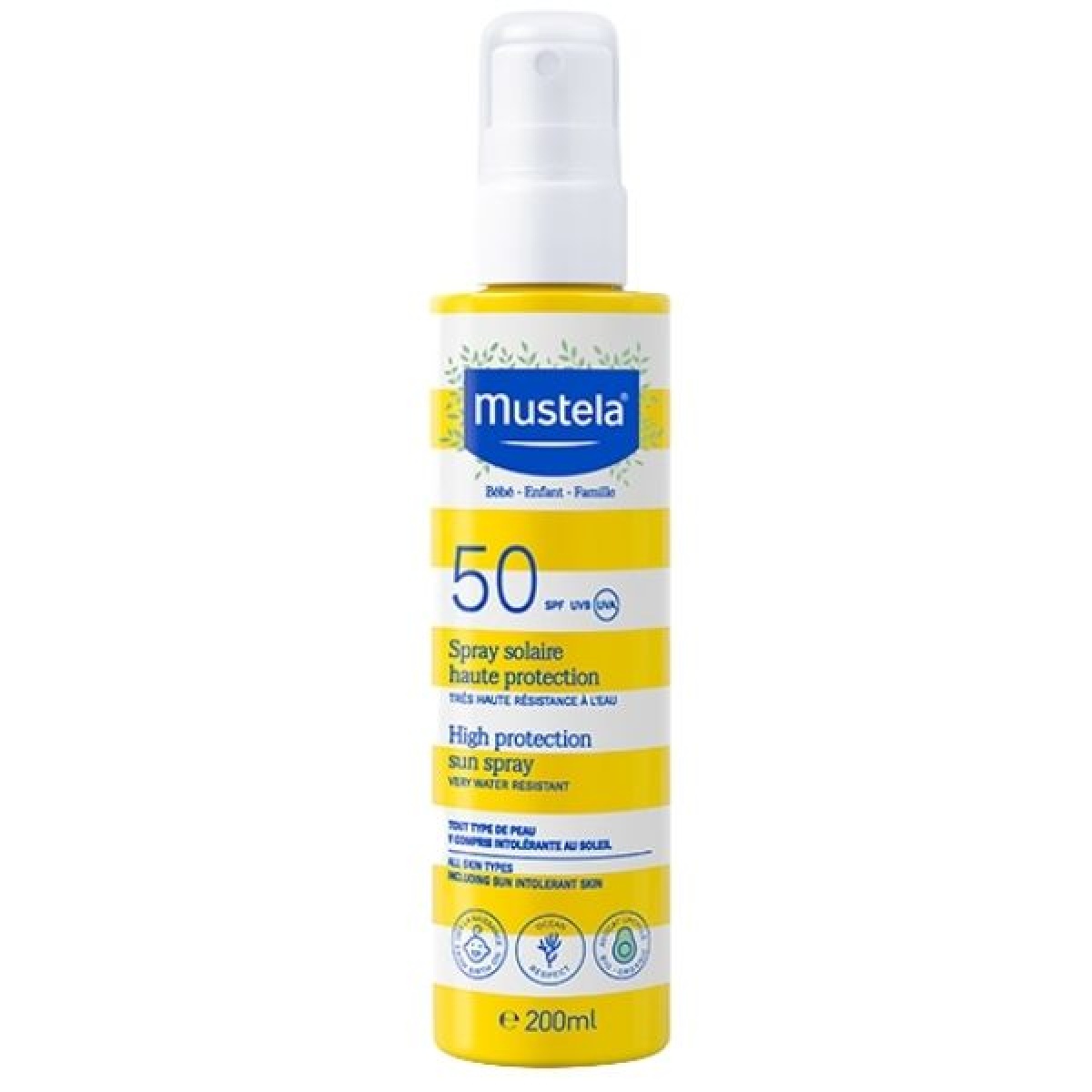 Αυτό το Αντηλιακό Σώματος & Προσώπου υψηλής προστασίας, Mustela High Protection Sun Spray με δείκτη SPF 50, προστατεύει το ευαίσθητο, το μη ανεκτικό, το ατοπικό και το φωτοευαίσθητο δέρμα από τις ακτίνες UVΑ και UVB.