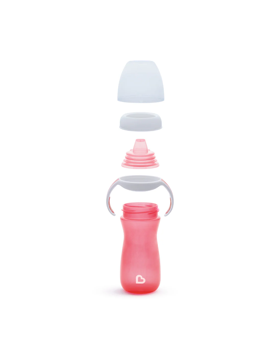 Η μετάβαση από το μπουκάλι στο κύπελλο αποτελεί ένα συναρπαστικό πρώτο βήμα προς την ανεξαρτησία του παιδιού! Αυτό, όμως, μπορεί να προκαλέσει σύγχυση στην αρχή στα μικρά παιδιά. Η Munchkin κάνει πιο εύκολη την αλλαγή αυτή με το Gentle μεταβατικό κύπελλο, τώρα διαθέσιμο και στο μέγεθος των 300ml . Το στόμιο είναι εξαιρετικά εύκαμπτο και μαλακό για τα ευαίσθητα ούλα των μωρών, ενώ οι αφαιρούμενες λαβές διευκολύνουν το σημαντικό αυτό προβάδισμά τους.