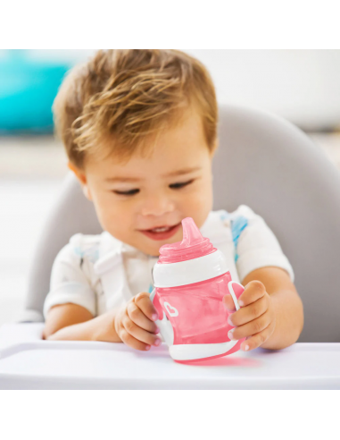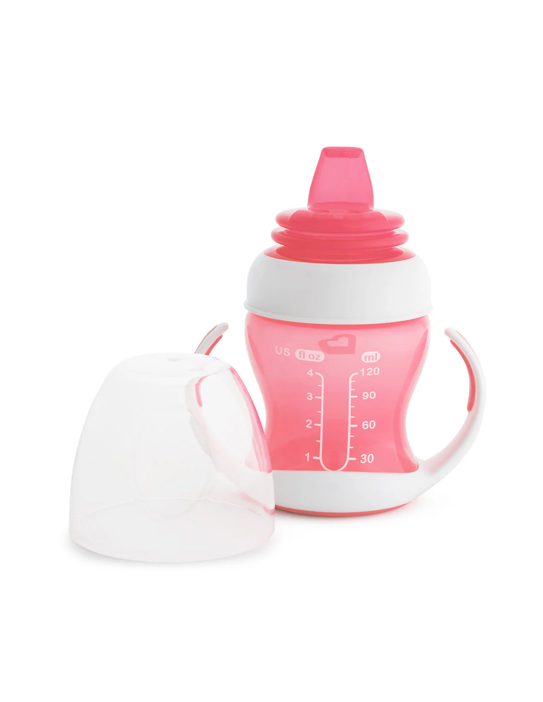 Η μετάβαση από το μπιμπερό στο κύπελλο είναι ένα σημαντικό πρώτο βήμα για να μάθει το παιδί σας να πίνει μόνο του, μπορεί όμως να είναι δύσκολο για τα μωρά που δεν θηλάζουν. Κάντε αυτήν τη μετάβαση ευκολότερη με το μεταβατικό ποτήρι Gentle™ που δεν στάζει! Το κατοχυρωμένο μαλακό στόμιο είναι πολύ εύκαμπτο και απαλό με τα ευαίσθητα ούλα των μωρών και, χάρη στις αφαιρούμενες λαβές, μπορούν να το χειριστούν εύκολα. Όταν το παιδί σας είναι έτοιμο να αφήσει το μπουκάλι, το εκπαιδευτικό ποτήρι που δεν στάζει είναι η καλύτερη επιλογή για το αμέσως επόμενο βήμα. Στην υγειά του μωρού σας, λοιπόν!