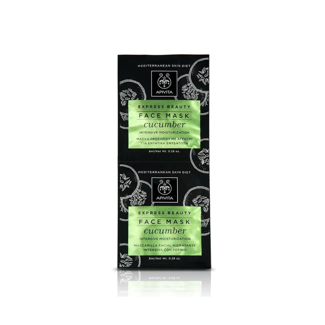 Apivita Express Beauty, Μάσκα Προσώπου με Αγγούρι για Εντατική Ενυδάτωση 2x8ml