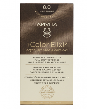 Η Μόνιμη Βαφή Μαλλιών My Color Elixir της Apivita, συνδυάζει την εξαιρετική χρωματική απόδοση, με την πλήρη κάλυψη των λευκών μαλλιών, ενώ παράλληλα σταθεροποιεί και σφραγίζει το χρώμα στην τρίχα φροντίζει και μειώνει τη φθορά της.