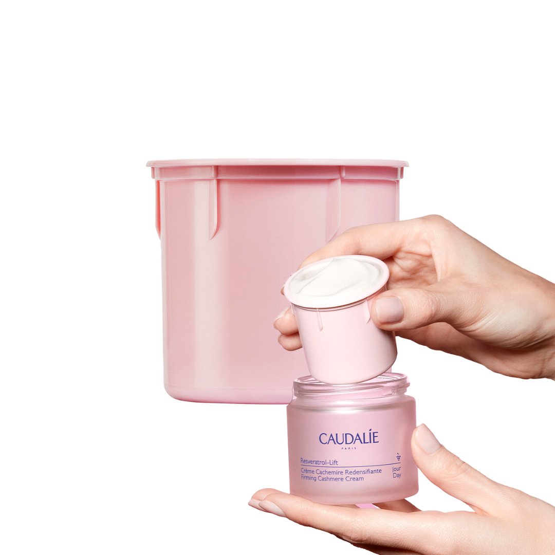 Η Caudalie αναλαμβάνει δράση έτσι ώστε η ομορφιά να συμβαδίζει με την ευθύνη απέναντι στο περιβάλλον. Τα δοχεία αναπλήρωσης σας δίνουν τη δυνατότητα να ξαναγεμίζετε το βάζο της Firming Cashmere Cream Resveratrol–Lift με πολύ απλό τρόπο. Για καλύτερη συντήρηση, το δοχείο αναπλήρωσης έχει σχεδιαστεί να χρησιμοποιείται μόνο με το βάζο που ξαναγεμίζεται.