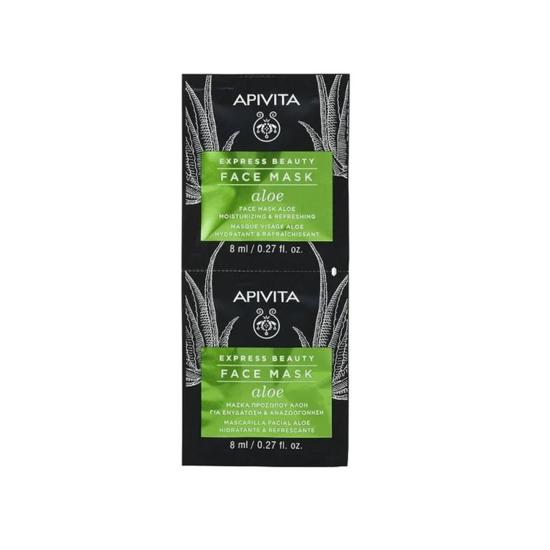 Apivita Express Beauty, Μάσκα Προσώπου με Αλόη για Ενυδάτωση & Αναζωογόνηση 2x8ml