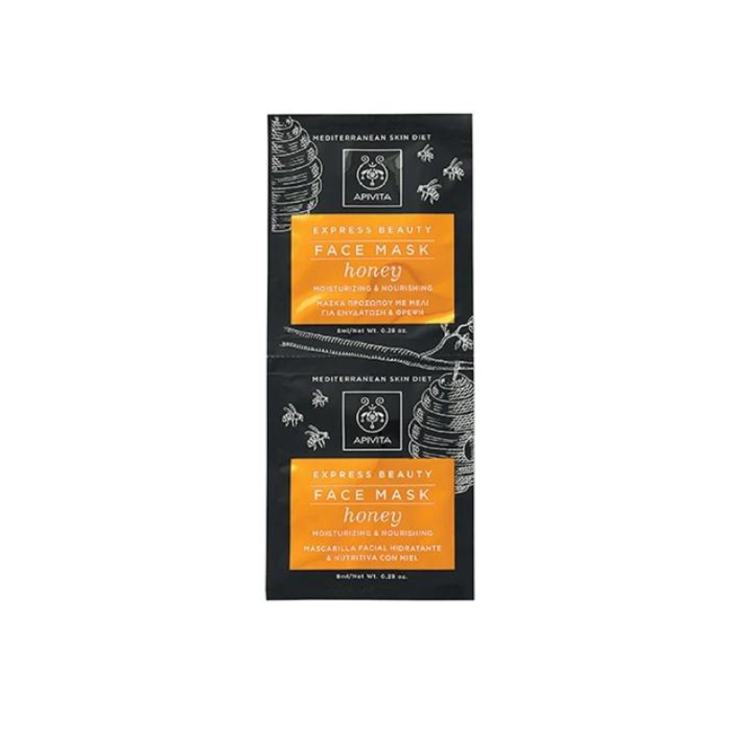 Apivita Express Beauty, Μάσκα Προσώπου με Μέλι για Ενυδάτωση & Θρέψη 2x8ml