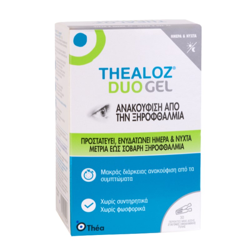Το Thealoz®Duo Gel είναι μια λεπτόρρευστη γέλη η οποία προσφέρει ενυδάτωση με μεγάλη διάρκεια παραμονής στον οφθαλμό χωρίς να κολλάει και να θολώνει την όραση.