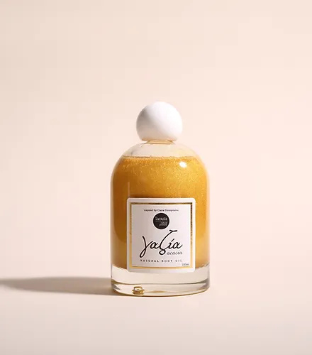Το έλαιο σώματος "Γαζία" είναι εμπλουτισμένο με φυτικά έλαια και βοτανικά εκχυλίσματα που προσφέρουν βαθιά ενυδάτωση και φυσική λάμψη στην επιδερμίδα. Οι φλοράλ αρωματικές νότες του και το χρυσωπό αποτέλεσμα που χαρίζει στο δέρμα φέρνουν αναμνήσεις μιας παλιάς Αθήνας.