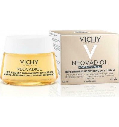 Η NEOVADIOL Κρέμα Ημέρας για τη Μετεμμηνόπαυση - Αναπλήρωση Λιπιδίων κατά της Χαλάρωσης, επανενεργοποιεί τους μηχανισμούς της επιδερμίδας: χαλάρωση, ρυτίδες. Την περίοδο της εμμηνόπαυσης, οι ορμονικές αλλαγές που βιώνουμε επιταχύνουν τη γήρανση του δέρματος. Η επιδερμίδα χάνει την πυκνότητα της και γίνεται ορατά πιο θαμπή. Το περίγραμμα αλλοιώνεται. Επειδή η αποτελεσματικότητα είναι προτεραιότητά μας στη Vichy, οι συνθέσεις έχουν κλινικά αξιολογηθεί από δερματολόγους σε εμμηνοπαυσιακές γυναίκες με ευαίσθητο δέρμα.