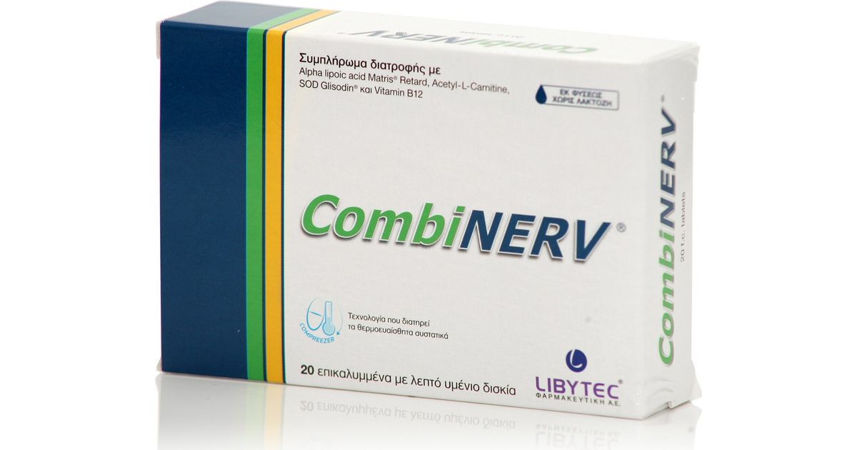 To συμπλήρωμα διατροφής Combinerv αποτελεί ένα καινοτόμο τετραπλό συνδυασμό δύο αντιοξειδωτικών (α- λιποϊκού οξέος-ALA και υπεροξείδιου της δισμουτάσης-SOD) μαζί με ακέτυλο- καρνιτίνη και Βιταμίνη Β12.