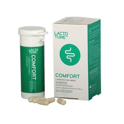 Το LACTOTUNE™ Comfort της Innovis Pharma, είναι ένα καινοτόμο συμβιωτικό προϊόν με 8 διαφορετικά στελέχη προβιοτικών βακτηρίων γαλακτικού οξέος (8 δισεκατομμύρια), με συγκεκριμένες ιδιότητες, πρεβιοτικές ίνες Actilight®, τη βέλτιστη τροφή των προβιοτικών, καθώς και μικρή ποσότητα κιτρικού ψευδαργύρου που συμβάλλει στο φυσιολογικό μεταβολισμό υδατανθράκων και μακροθρεπτικών συστατικών(4). Ο συνδυασμός αυτός επιδρά ευεργετικά στη συνολικότερη υγεία του πεπτικού συστήματος, ενώ ανακουφίζει από συμπτώματα όπως φούσκωμα, κοιλιακό άλγος, διάρροια, δυσκοιλιότητα κτλ.