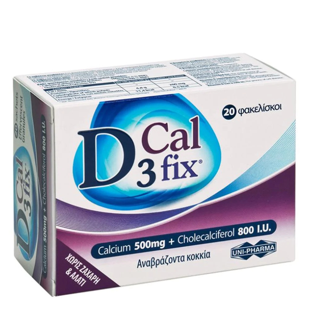 Uni-Pharma D3 Fix Cal, Calcium 500mg & Cholecalciferol 800iu X20 Φακελίσκοι